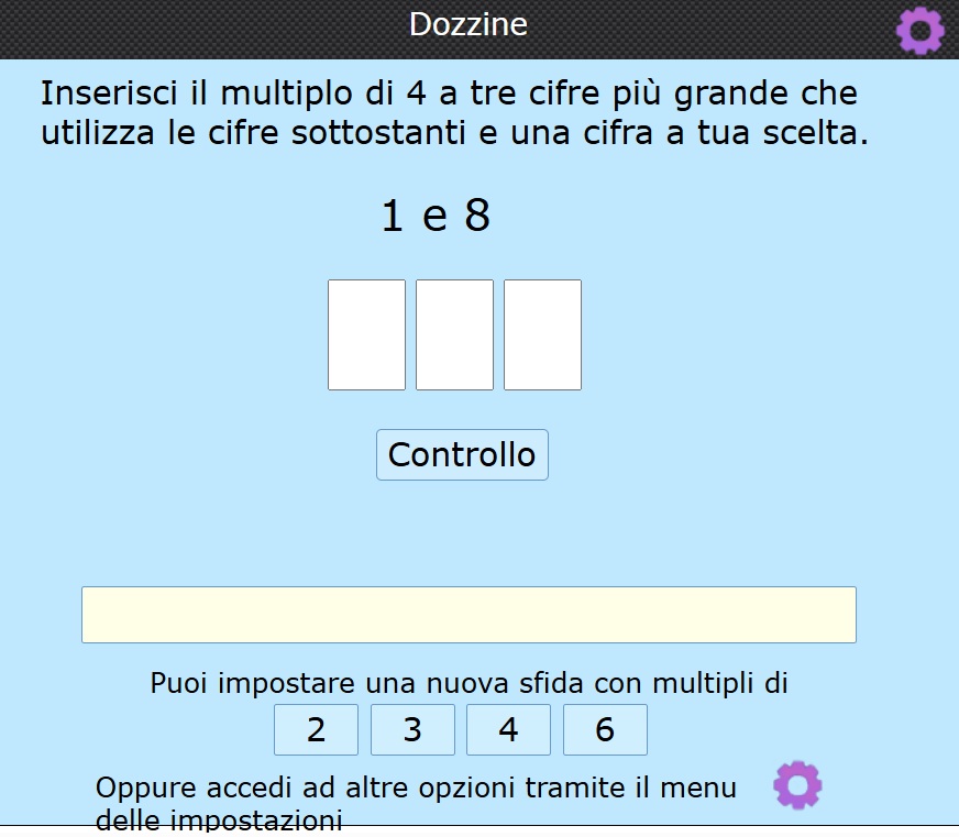 L’organizzatore utilizzando il tool al seguente link https://nrich.maths.org/559 chiede agli allievi (o alle squadre) di identificare il più grande numero che soddisfi le condizioni indicate. Dopo un tempo predeterminato viene sorteggiata una squadra che deve provare a dare la soluzione corretta. Se la soluzione è corretta la squadra vince un punto, se no viene sorteggiata un’altra squadra e così via.
