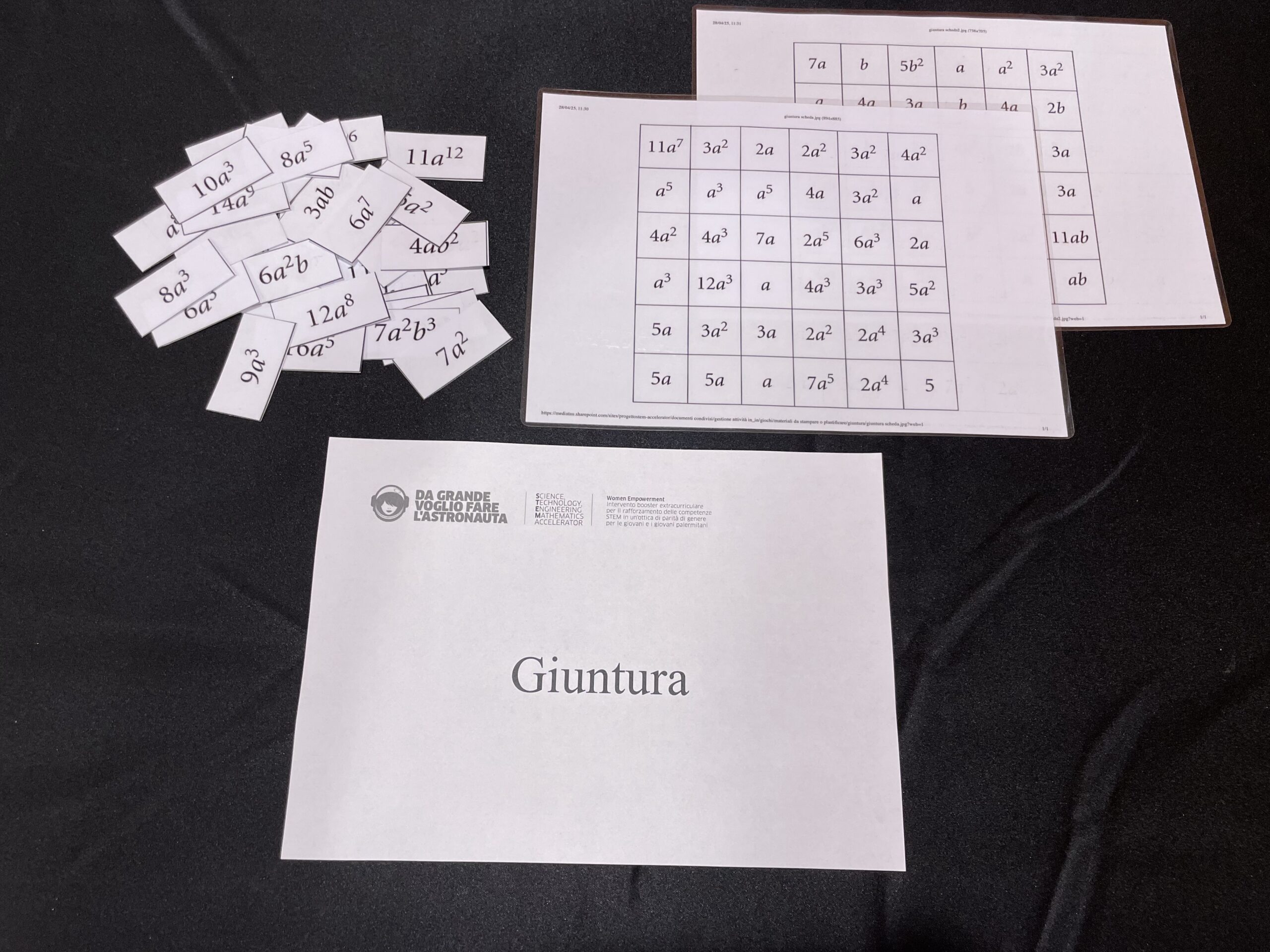 Ogni squadra riceve una scheda di gioco e delle tessere rettangolari che mostrano il possibile risultato del prodotto tra due caselle della tabella di gioco. Al via i giocatori di ogni squadra iniziano ad apporre le tessere ricoprendo con ogni tessera rettangolare i due quadrati adiacenti corrispondenti ai fattori che moltiplicati generano il risultato scritto sulla tessera. L’obiettivo è ricoprire completamente la scheda di gioco in maniera corretta prima degli altri. La squadra che vince ottiene 5 punti.Una volta completato il primo giro si distribuiscono alle squadre delle schede vuote e si chiede di creare delle nuove schede con le relative tessere. Dopo un tempo predeterminato, durante il quale le squadre creano quante più nuove schede possibili e le sottopongono all’organizzatore per la convalida, ha inizio la seconda fase del gioco nella quale le schede create vengono messe al centro e ogni squadra sceglie una scheda tra quelle create dalle altre squadre e prova a risolverle, appena finisce passa ad una scheda successiva e così via fino a quando si esauriscono le schede disponibili. A quel punto si conteggiano i punti e ogni squadra ottiene 3 punti per ogni scheda risolta. Vince chi totalizza più punti.